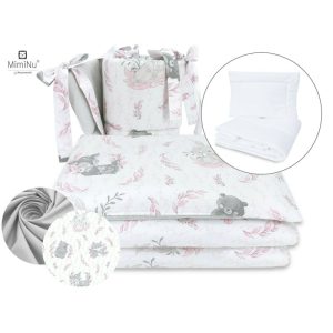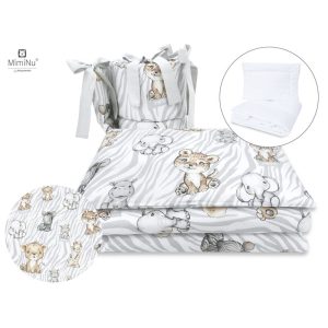 Set lenjerie patut 8 piese cu baldachin din bumbac pentru patut 120×60 cm Safari Natural MimiNu