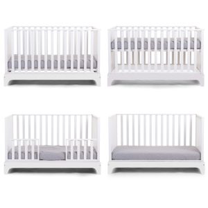 Patut copii 9 in 1 evolutiv din lemn alb cu saltea din bambus
