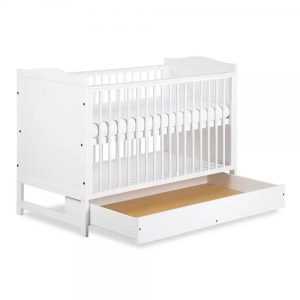 Patut din lemn pentru bebe inaltime saltea reglabila Noble alb + saltea cocos 120x60x10 cm