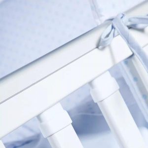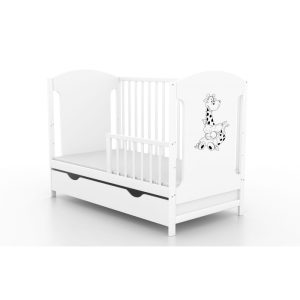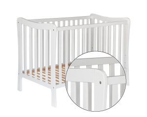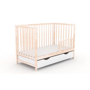 Patut bebe din lemn masiv cu sertar, roti, laterale culisabile si inaltime reglabila a saltelei Mio Faccetta 127×63 cm