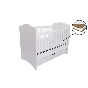 Patut Vessanti Como cu sertar alb + saltea cocos confort 120 x 60 x 12 cm
