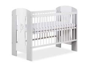 Patut din lemn pentru bebe inaltime saltea reglabila Star Baby Alb 120×60 cm