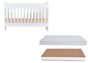 Patut mic co-sleeping din lemn alb cu Saltea Cocos Spuma Cocos 90 x 40 x 7 cm