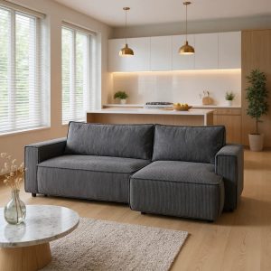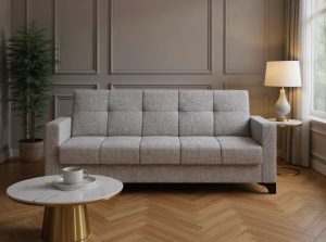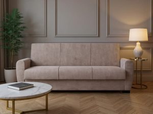 Canapea extensibila 3 locuri Capri cu lada de depozitare, Bej – Gri, 240x87x85 cm