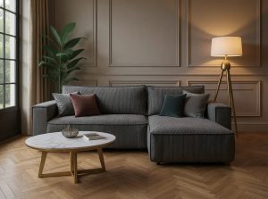 Coltar Extensibil 3 locuri Armando, cu ladă de depozitare, Verde – Gri, 240 x 147 x 85 cm