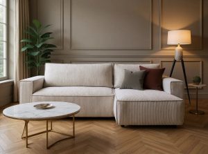 Canapea Extensibilă 3 locuri Valencia, cu ladă de depozitare, Bej – Gri, 220 x 68 x 90 cm