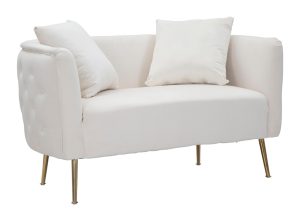 Canapea cu 2 locuri Raini cu perne din catifea crem 178x82x68cm
