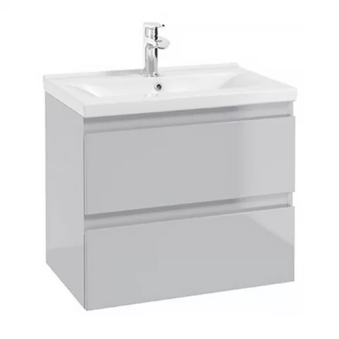 Baza lavoar suspendat Defra Como 2 sertare 59.9×40 cm gri-deschis lucios