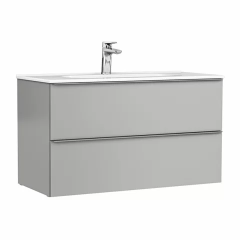 Baza lavoar suspendat Gala Shona 2 sertare 100×46 cm gri Baza pentru lavoar suspendat Gala Shona 2 sertare 100×46 cm gri reprezinta o alegere ideala pentru a aduce un plus de eleganta si functionalitate baii tale. Proiectat de Gala, acest dulap de baie face parte din colectia Shona si este o combinatie perfecta de stil si practicitate. Cu o forma dreptunghiulara moderna si o culoare gri mata, acest dulap adauga o nota contemporana baii tale. Finisajul mat ofera un aspect rafinat si se integreaza perfect in orice design de baie. Construit din MDF polilaminat de inalta calitate, acest dulap este durabil si rezistent la umezeala, ceea ce il face potrivit pentru mediul umed al baii. Dimensiunile generoase de 56.5x100x46 cm ofera suficient spatiu pentru a depozita articolele de baie si alte obiecte personale. Cele doua sertare ale dulapului au un sistem de inchidere softclose, ceea ce inseamna ca se inchid usor si linistit, fara zgomoturi enervante. Montarea suspendata creeaza un aspect aerisit in baia ta si face curatenia mai usoara. Inaltimea de 56.5 cm ii confera un aspect compact si spatios in acelasi timp. Cu baza lavoar Gala Shona 2 sertare, poti adauga un element de design si functionalitate baii tale. Transforma-ti baia intr-un spatiu elegant si organizat cu acest dulap modern si practic. Pretul include doar dulapul baza. Celelalte produse din imagini se comanda separat.