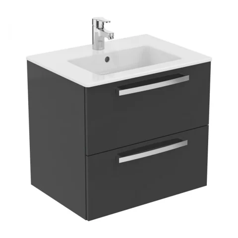 Baza lavoar suspendat Ideal Standard Tempo 2 sertare 60×44 cm gri lucios