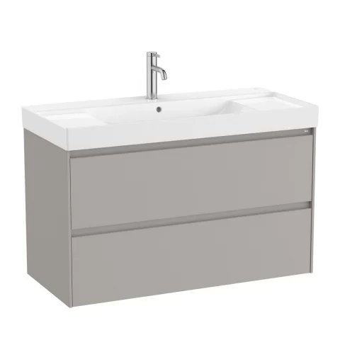 Set PROMO mobilier baza si lavoar cu 2 polite Roca Ona Unik 2 sertare 100×46 cm gri mat