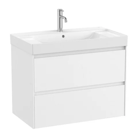 Set PROMO mobilier baza si lavoar cu 2 polite Roca Ona Unik 2 sertare 80×46 cm alb mat