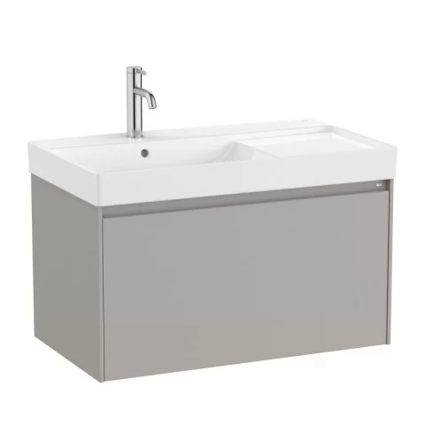 Set PROMO mobilier baza si lavoar cu polita dreapta Roca Ona Unik 1 sertar 80×46 cm gri mat