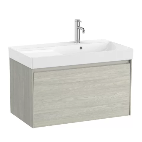 Set PROMO mobilier baza si lavoar cu polita stanga Roca Ona Unik 1 sertar 80×46 cm stejar deschis
