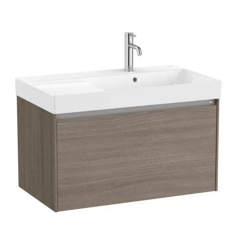 Set PROMO mobilier baza si lavoar cu polita stanga Roca Ona Unik 1 sertar 80×46 cm ulm inchis