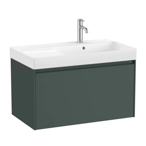 Set PROMO mobilier baza si lavoar cu polita stanga Roca Ona Unik 1 sertar 80×46 cm verde mat