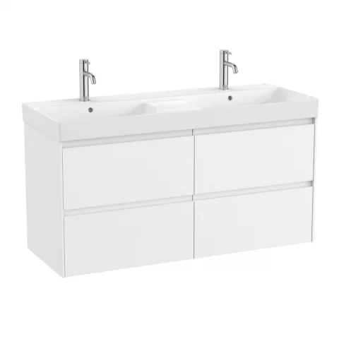 Set PROMO mobilier baza si lavoar dublu Roca Ona Unik 4 sertare 120×46 cm alb mat