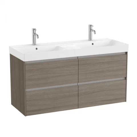 Set PROMO mobilier baza si lavoar dublu Roca Ona Unik 4 sertare 120×46 cm ulm inchis