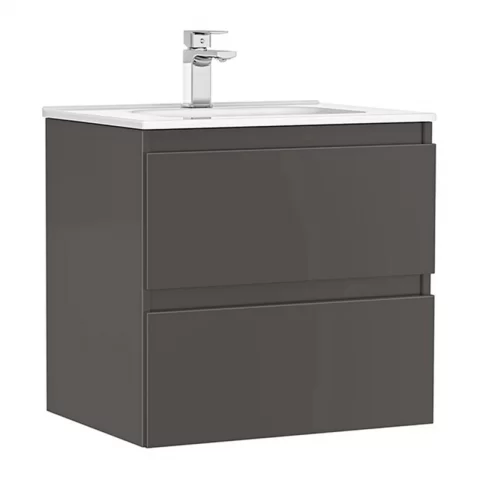 Set PROMO mobilier baza si lavoar Gala Daily 60×46 cm 2 sertare antracit