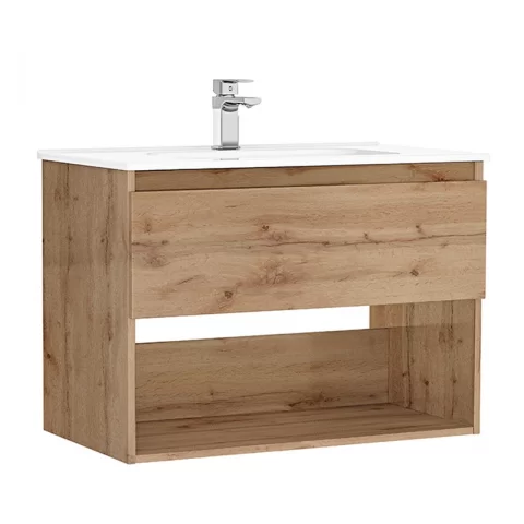 Set PROMO mobilier baza si lavoar Gala Daily 80×46 cm 1 sertar stejar rustic