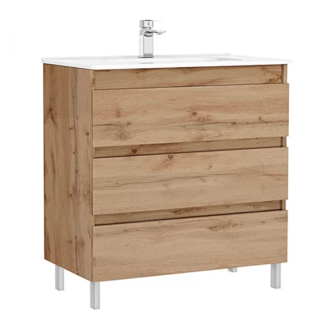 Set PROMO mobilier baza si lavoar Gala Daily 80×46 cm 3 sertare stejar rustic