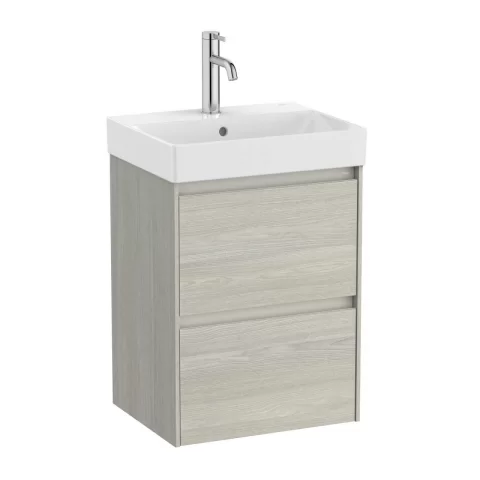 Set PROMO mobilier baza si lavoar Roca Ona Unik 2 sertare 45×36 cm stejar deschis