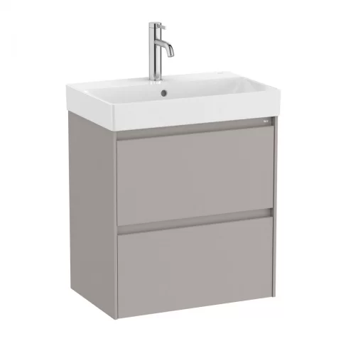 Set PROMO mobilier baza si lavoar Roca Ona Unik 2 sertare 55×36 cm gri mat