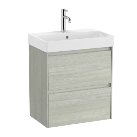 Set PROMO mobilier baza si lavoar Roca Ona Unik 2 sertare 55×36 cm stejar deschis