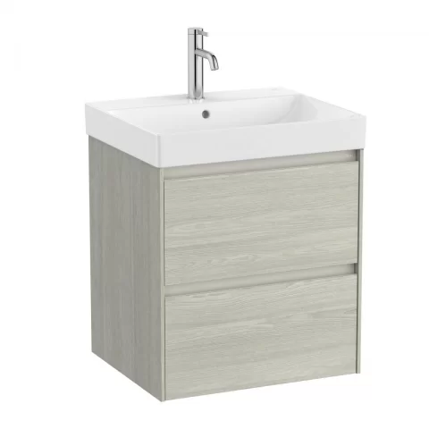 Set PROMO mobilier baza si lavoar Roca Ona Unik 2 sertare 55×46 cm stejar deschis