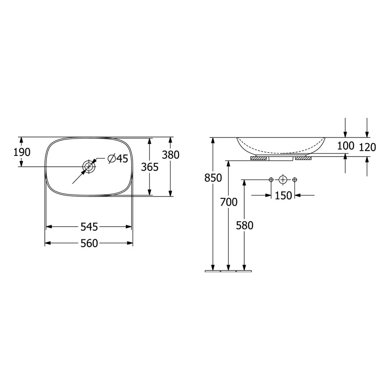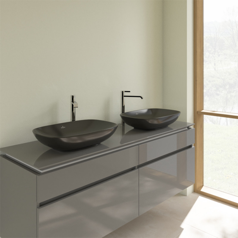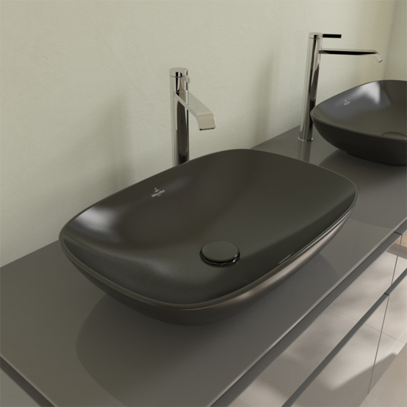 lavoar pe blat, dreptunghiular, fara orificiu pentru baterie, cu orificiu de preaplin material: TitanCeram culoare: negru (Ebony, conform nomenclatorului Villeroy & Boch) finisaj: mat dimensiune: 56 x 38 cm greutate: 11,30 kg lavoarul se monteaza fie pe un blat din marmura, travertin, MDF, fie pe un mobilier care in partea de sus se inchide cu un blat in cazul alimentarii de la o baterie de perete, alegeti pipa bateriei in conformitate cu distanta dintre ventilul lavoarului fata de perete Nota! a se asigura in momentul montarii pe blat un spatiu suficient intre perete si lavoar, pentru ca montarea bateriei stative sa se poate efectua atat tehnic cat si estetic Explicarea termenilor: TitanCeram: este o tehnologie speciala dezvoltata de firma Villeroy & Boch, care permite realizarea unor produse ceramice cu pereti foarte subtiri si care se bazeaza pe o compozitie speciala a argilei, cuartului, feldspatului si oxidului de titan. Despre brand: Produsele Villeroy & Boch se incadreaza in segmentele confort, premium si lux. Iti punem la dispozitie mobiliere de baie, vase wc, bideuri, cazi de baie, lavoare baie, capace wc, rezervoare wc. Orice produs Villeroy& Boch este atent fabricat din materiale premium