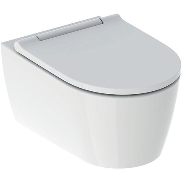 vas WC suspendat cu evacuare orizontala spalare verticala cu forma inchisa prindere ascunsa fixarea se face pe perete, simpla prin angrenaj, pentru transmitere optima a puterii culoare: alb glazura ceramica: KeraTect ( vezi explicarea termenilor ) dimensiuni: 37×54 cm material: ceramica sanitara rimfree ( vezi explicarea termenilor) tehnica de clatire TurboFlush ( vezi explicarea termenilor ) vasul este reglabil in inaltime, margine sup. din ceramica 41-45 cm contine capacul WC materialul capacului: duroplast materialul balamelei: metal marginea suprapusa peste colac capac cu inchidere lenta ( soft close ) si demontare rapida ( quick release ), vezi explicarea termenilor Explicarea termenilor: TurboFlush: asigura o spalare perfecta a vasului ceramic fara rama KeraTect: glazura ce asigura protectia suprafetelor ceramice. Este foarte neteda si lucioasa. Intretinerea si curatarea nu dau mari batai de cap deoarece acest tip de glazura nu se murdareste cu usurinta si este igienic. Produsul este protejat de zgarieturi si ii ofera rezistenta la uzura. Rimfree: vasele WC fabricate in tehnologia Rimfree, nu au rama interioara (sunt „rimfree”). Jetul de apa este astfel directionat incat spala perfect, dar nu stropeste in afara vasului. Neexistand nici un sant in interiorul vasului, acesta se curata complet. Practic aceasta tehnologie elimina spatiile greu acesibile, greu de curatat din corpul vasului de toaleta. Soft Close: datorita amortizoarelor speciale integrate in balamale, capacele WC cu tehnologia „Soft close” (inchidere lenta), se inchid usor si silentios. Acest lucru imbunatateste comfortul si previne zgomotele generate de trantirea capacului WC. Avantaje: inchiderea silentioasa a capacului WC si prevenirea accidentelor cauzate de trantirea capacului. Quick Release: capacele WC cu tehnologia Quick Release pot fi demontate si montate la loc prin doar cateva miscari. Astfel, se pot curata mai usor si partile mai putin accesibile ale toaletei. Reatasarea capacului este la fel de usoara, printr-o simpla apasare. Inaltime reglabila – intelegem prin inaltimea vasului de toaleta distanta dintre pardoseala finisata si buza bolului de ceramica (fara capac). Elementele (ramele) de instalare ale vaselor de toaleta suspendate permit reglarea inaltimii numai in faza de constructie (inainte de faiantare). Sunt situatii cand se doreste reglarea ulterioara a inaltimii vaselor de toaleta. Firma Geberit a rezolvat aceasta problema. Vasul WC si bideul ONE, contin un mecanism care permite reglarea inaltimii in limitele + 3 cm/- 1cm (41 – 45 cm)