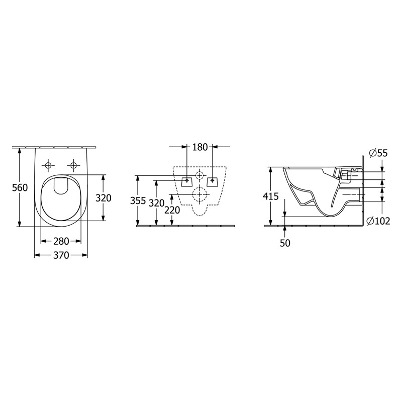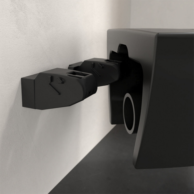 vas WC suspendat, Direct Flush (rimless), vezi explicarea termenilor evacuare orizontala este dotat cu sistemul de prindere Suprafix 3.0, vezi explicarea termenilor vasul WC are inclus sistemul de economisire a apei AQUAREDUCT: clatirea se realizeaza cu un volum de apa de numai 3 / 4,5 litri material: ceramica sanitara dimensiune: 37 x 56 cm greutate: 27,52 kg culoare: negru (Ebony, dupa nomenclatorul Villeroy & Boch) finisaj: mat Compatibilitate: produsul se fixeaza pe o rama de montaj Viconnect 92246100 (Villeroy & Boch) sau pe o rama de montaj de tip Geberit Sigma 111.300.00.5 (rama de montaj este autoportanta si contine si rezervorul de clatire) vezi produse recomandate . Daca se doreste o economisire suplimentara de spatiu, atunci se va folosi o rama slim, cu o adancime de numai 8 cm fata de rama normala care are o adamcime de 12 cm suruburile de fixare de rama, teava de evacuare si alte accesorii se livreaza impreuna cu rama capacul se comanda separat Explicarea termenilor: Direct Flush: Vasele WC fabricate in tehnologia Direct Flush, nu au rama interioara (sunt „rimless”). Jetul de apa este astfel directionat incat spala perfect, dar nu stropeste in afara vasului. Neexistand nici un sant in interiorul vasului, acesta se curata complet. Practic aceasta tehnologie elimina spatiile greu accesibile, greu de curatat din corpul vasului de toaleta. Suprafix: este un sistem de fixare ascuns dedicat vaselor WC suspendate Villeroy & Boch; elementele de fixare sunt ascunse in corpul toaletei fiind invizibile din exterior; astfel dispar gaurile (de acces) de pe suprafata toaletei, dispar capacele de mascare, glazura este neintrerupta; Vasele WC care au sistem de fixare Suprafix 2.0 sau 3.0 sunt dotate si cu sistemul de fixare a capacului Quick Release.