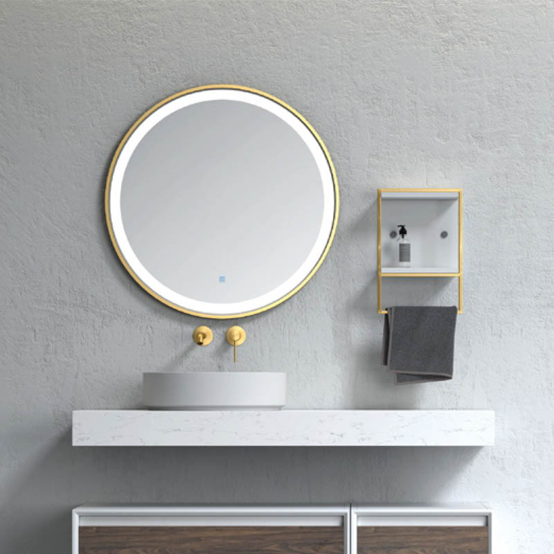 Oglindă, Fluminia, Gold-Lady-60, rotundă, cu iluminare LED și dezaburire, ramă aurie