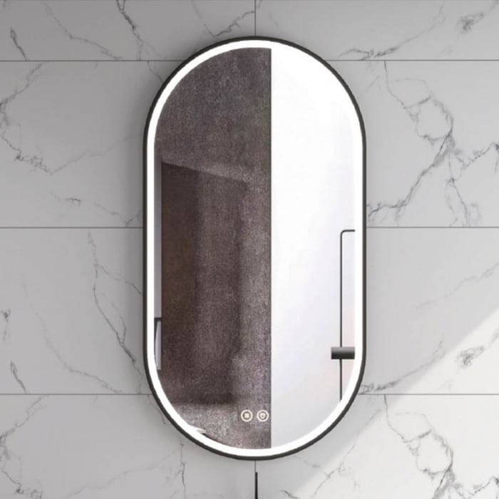 Oglinda ovala cu iluminare LED si dezaburire, rama neagra Fluminia, Dali