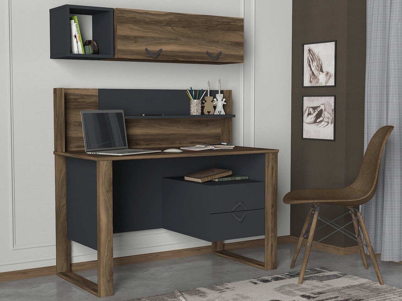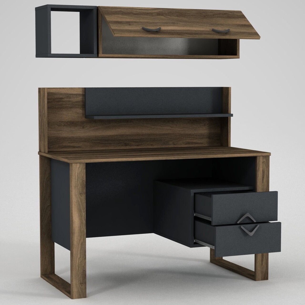 Birou cu raft, Tera Home, Bumerang, pal melaminat, nuc/antracit