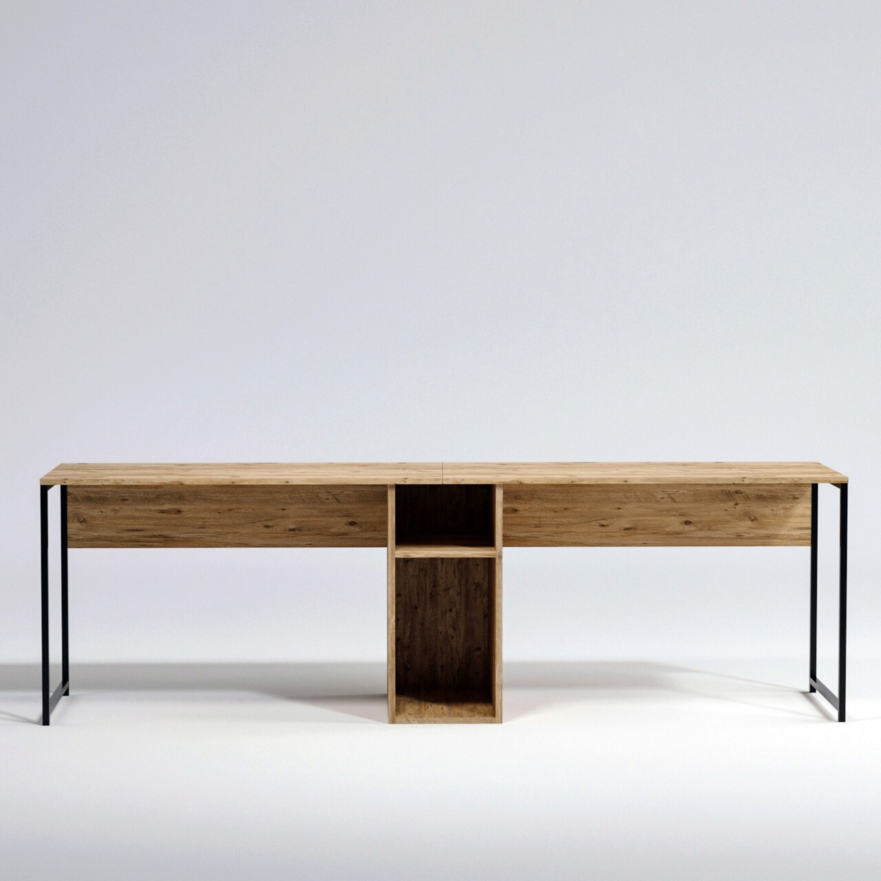 <p>Material: 100% PAL melaminat<br />Grosime: 18 mm<br />Picioare metalice acoperite cu pulbere electrostatica<br />Dimensiunea raftului din mijloc: 34 x H50 cm<br />Are numeroase rafturi<br />Produsul necesita asamblare</p>