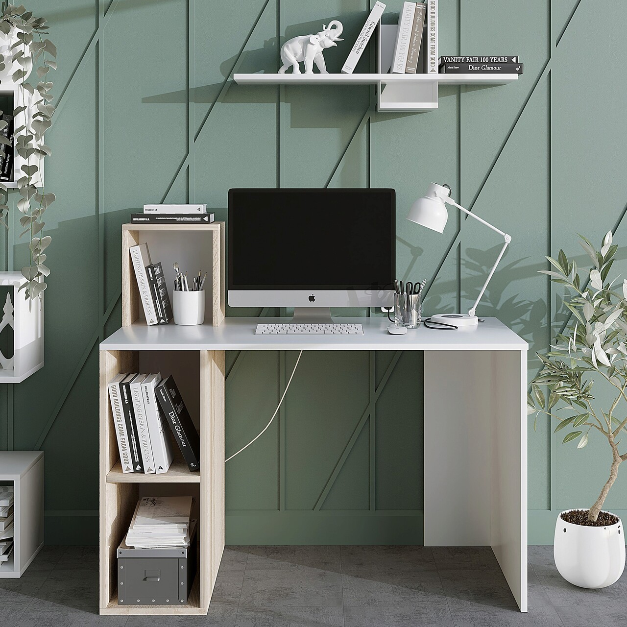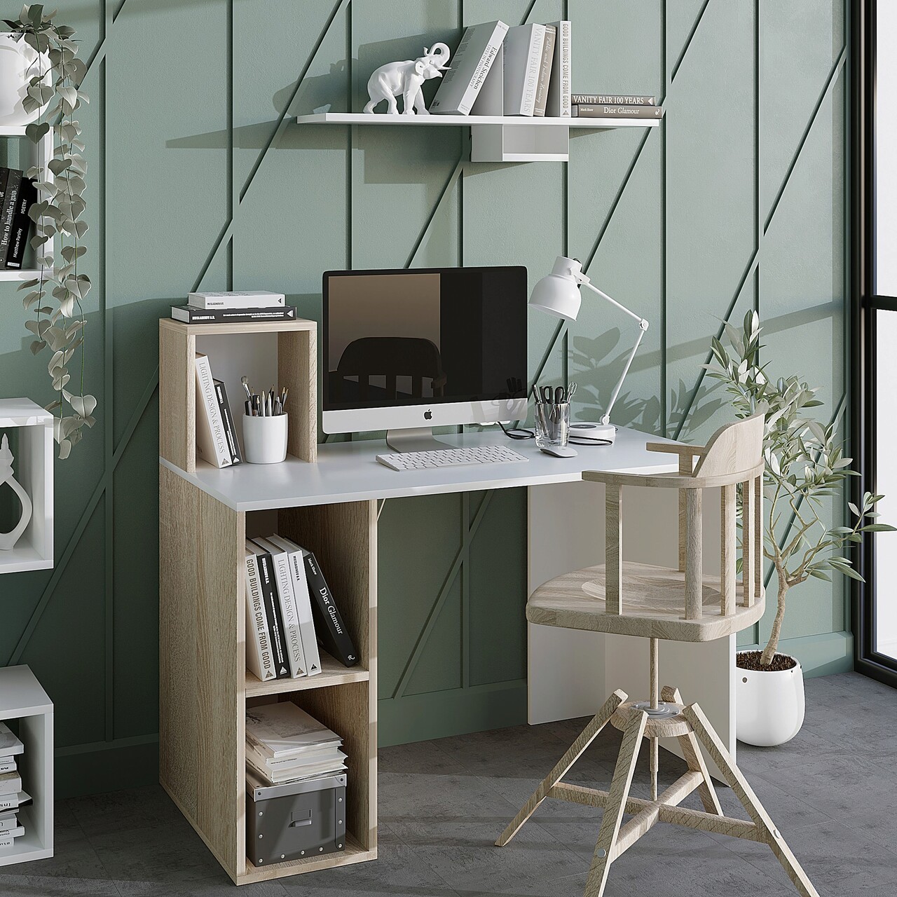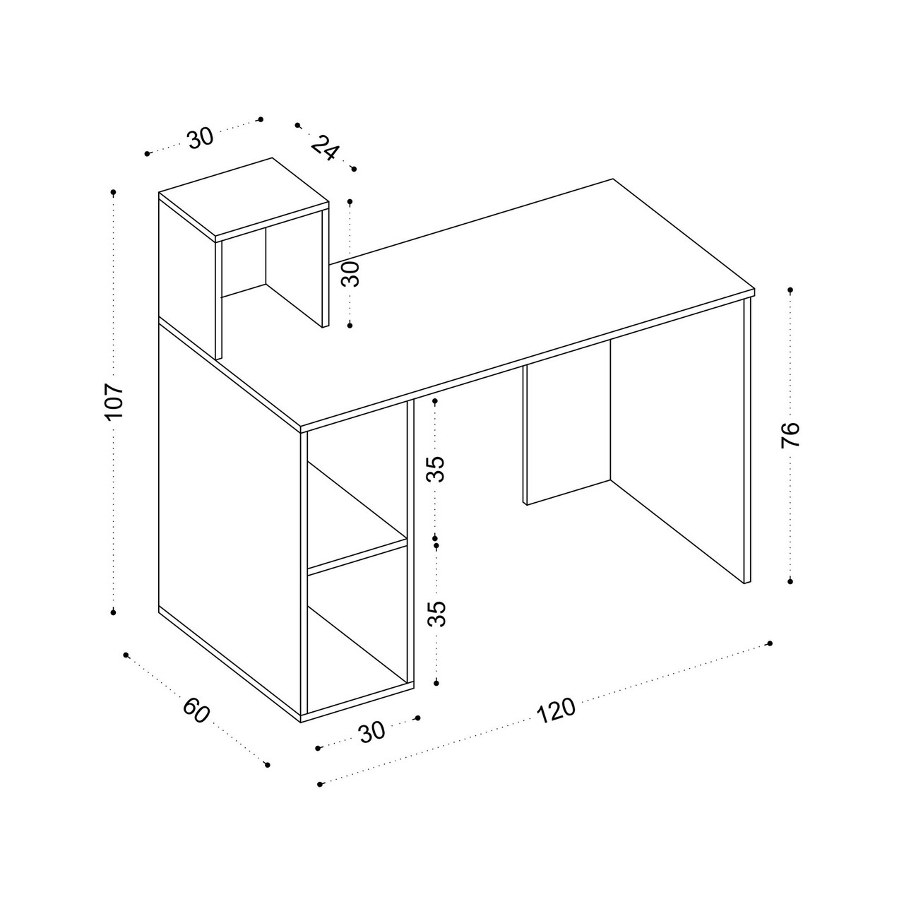 <p>PAL<br/><br/>Grosime: 18 mm<br/><br/>Latime: 120 cm <br/> Inaltime: 107,6 cm <br/> Adancime: 60 cm<br/><br/>Rafturi numeroase<br/><br/>Poate fi fixat pe perete<br/></p>