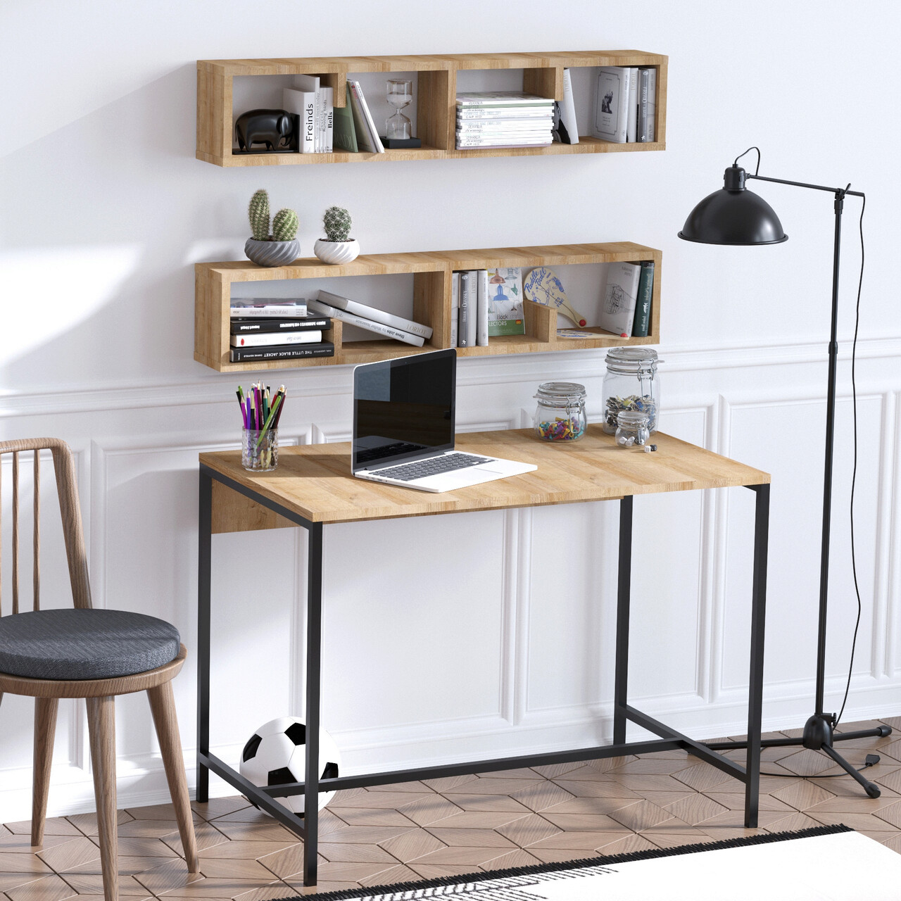 <p>PAL<br/><br/>Grosime: 18 mm<br/><br/>Dimensiune birou: Latime: 100 cm <br/> Inaltime: 74 cm <br/> Adancime: 60 cm<br/><br/>Dimensiunea raftului: <br/>Latime: 100 cm <br/>Inaltime: 20 cm <br/>Adancime: 15 cm (2 piese)<br/></p>