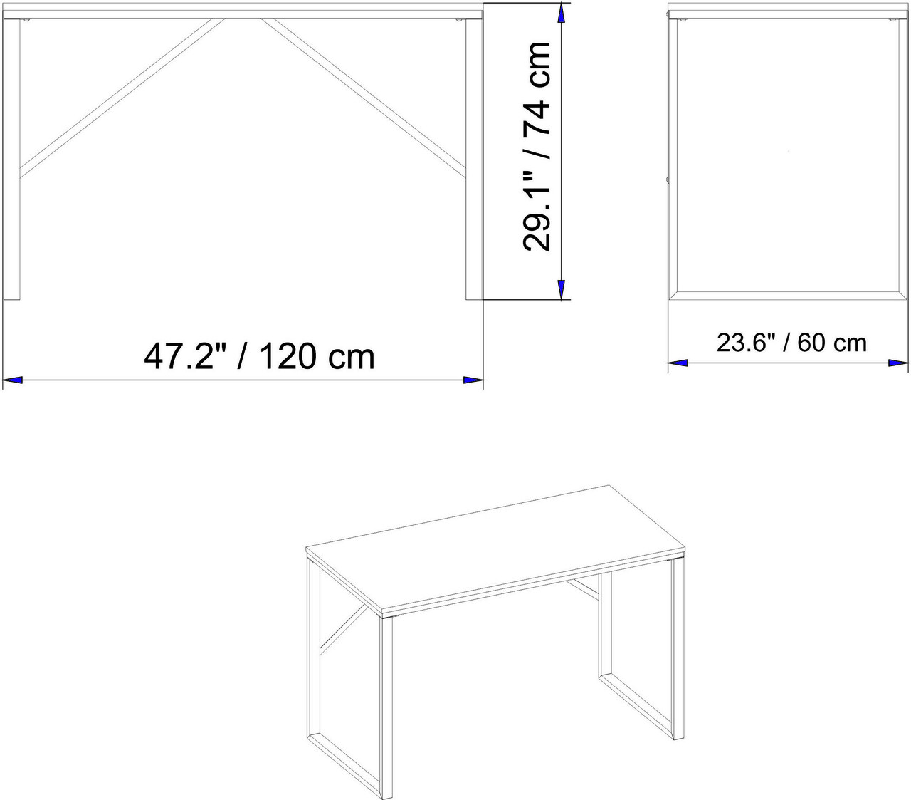 <p>PAL<br/><br/>Grosime: 18 mm<br/><br/>Picioare metalice<br/><br/>Latime: 120 cm <br/>Inaltime: 74 cm <br/>Adancime: 60 cm<br/></p>