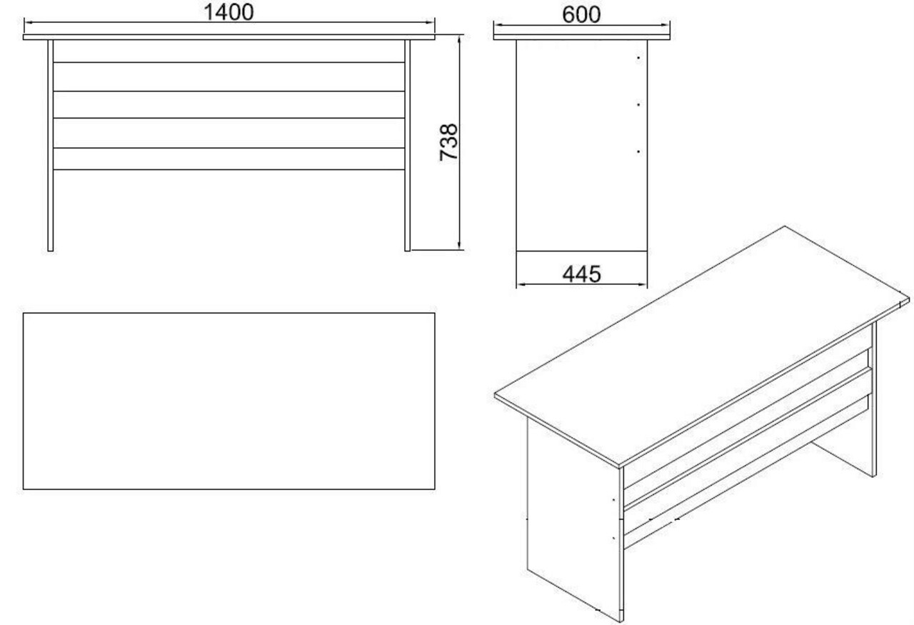 <p>PAL<br/><br/>Grosime: 18 mm<br/><br/>Latime: 140 cm <br/> Inaltime: 73,8 cm <br/> Adancime: 60 cm<br/></p>