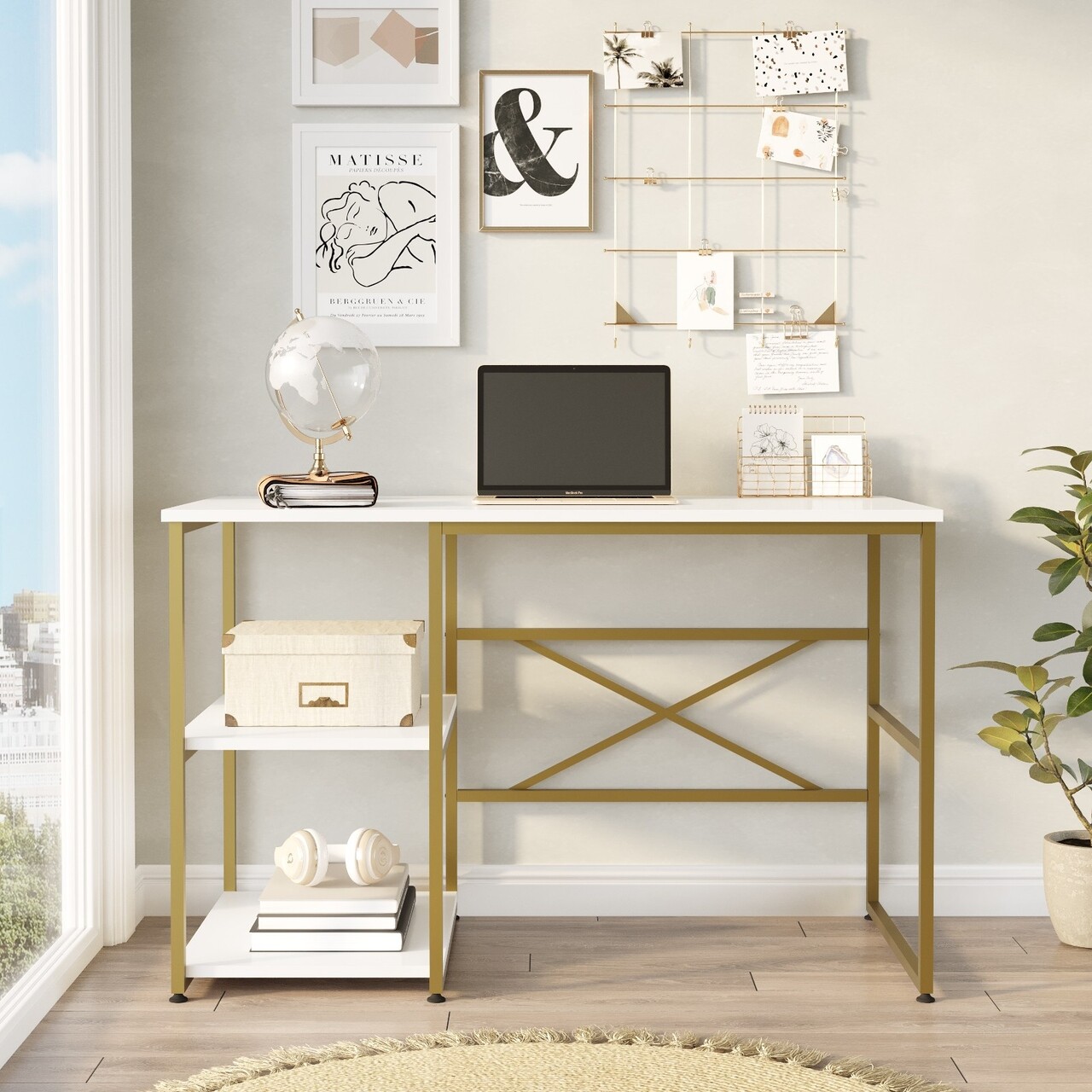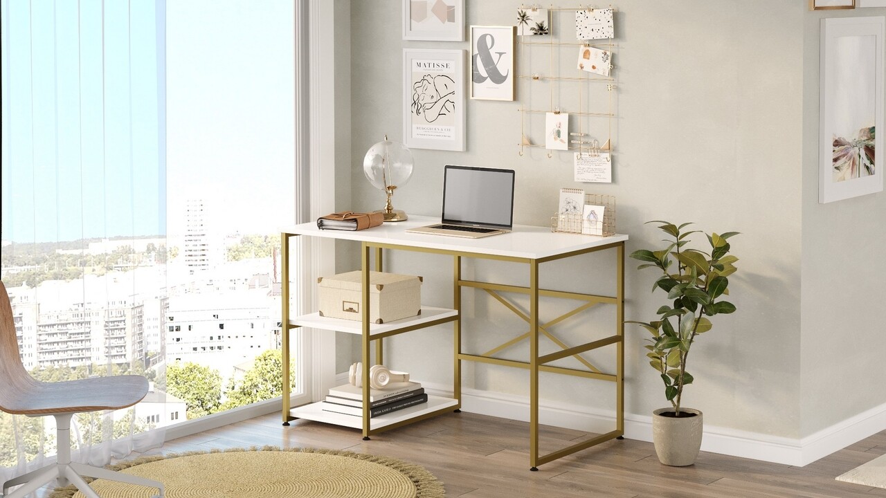 Birou, Locelso, VG23, 120 x 75 x 60 cm, pal melaminat/metal, alb/auriu