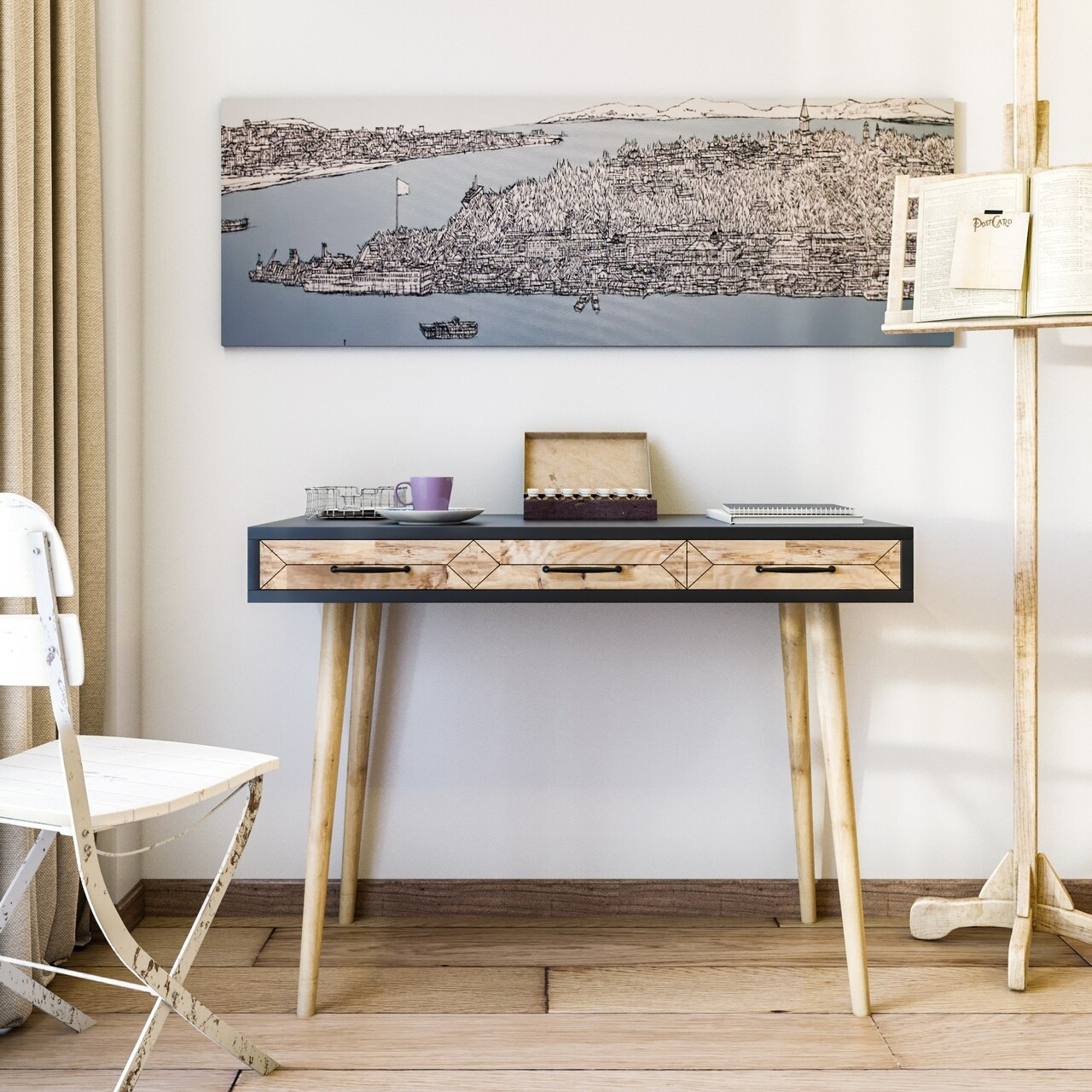 Birou Milano, Kalune Design, 105x55x79 cm, antracit/natural