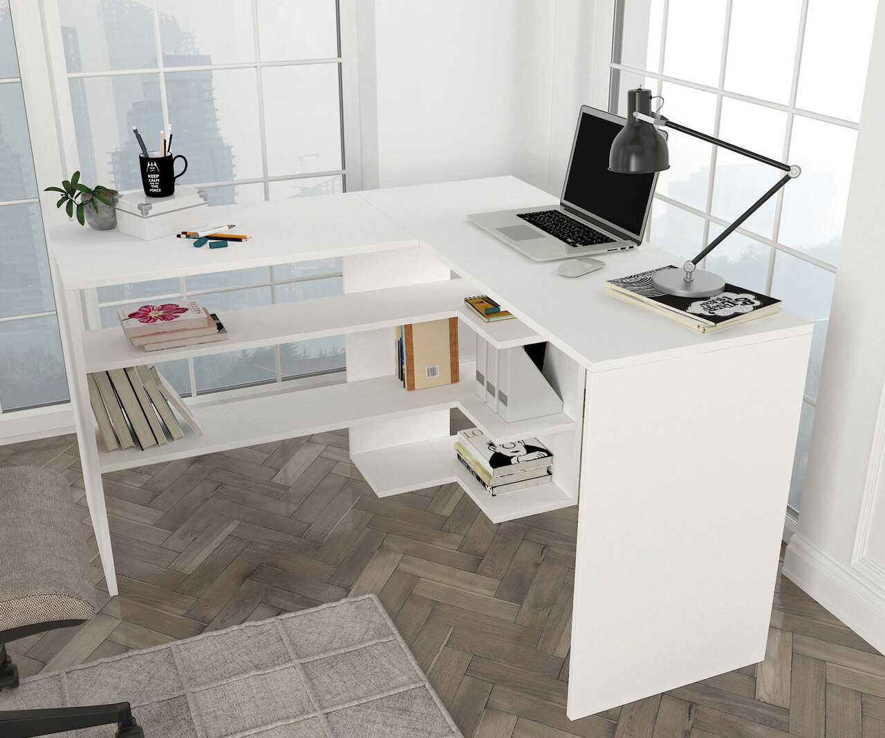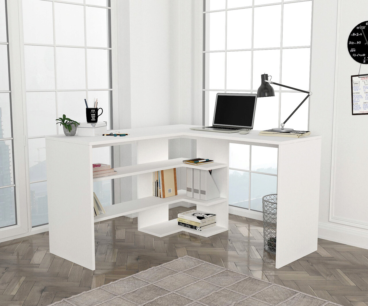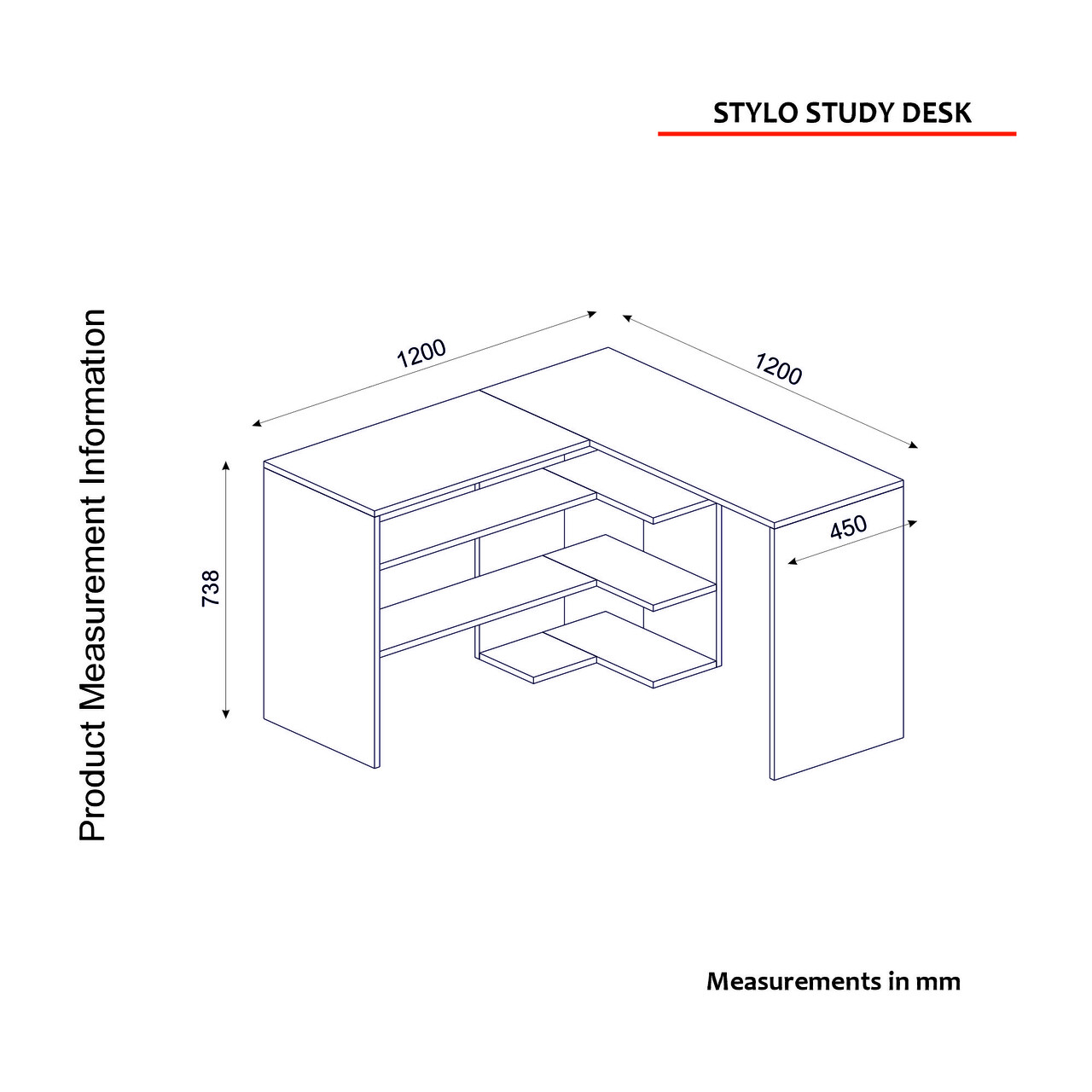 <p>Grosime: 18 mm<br/><br/>Marime: Latime: 120 cm <br/> Inaltime: 73,8 cm <br/> Adancime: 120 cm<br/><br/>Adâncimea biroului de studiu: 45 cm<br/><br/>Rafturi numeroase<br/><br/>Spatiu de depozitare suplimentar<br/><br/>Masa multifunctionala<br/></p>