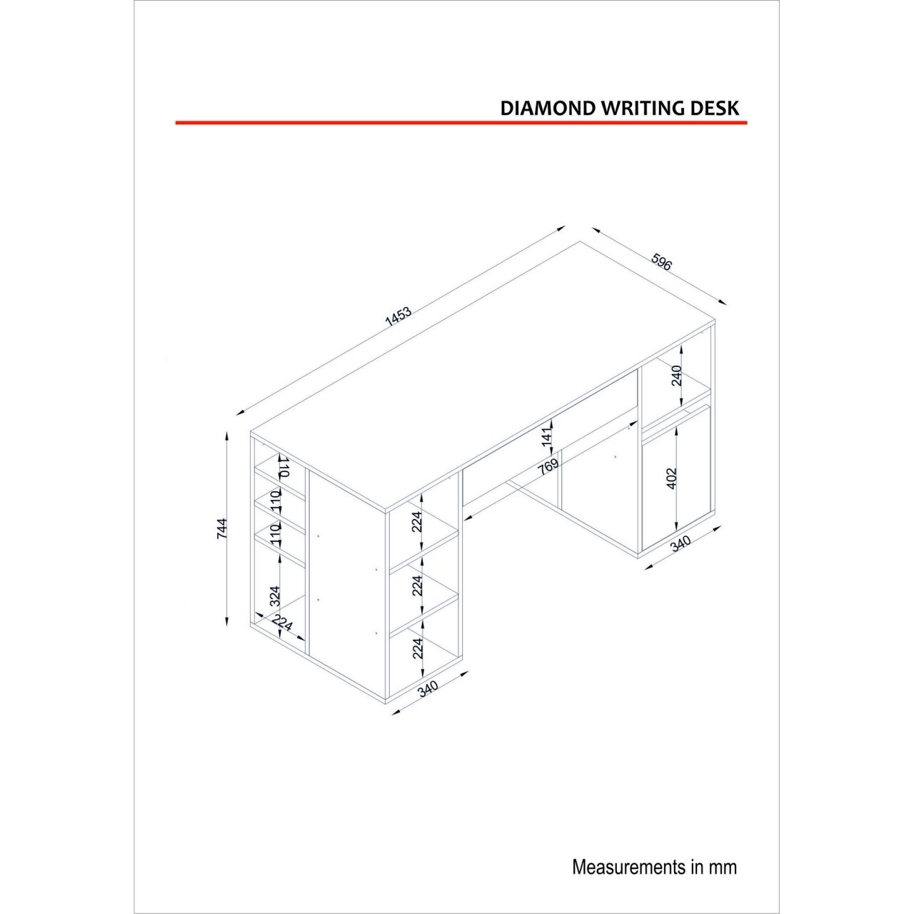 Birou Wooden Art, Diamond White, 145.3×74.4×59.6 cm