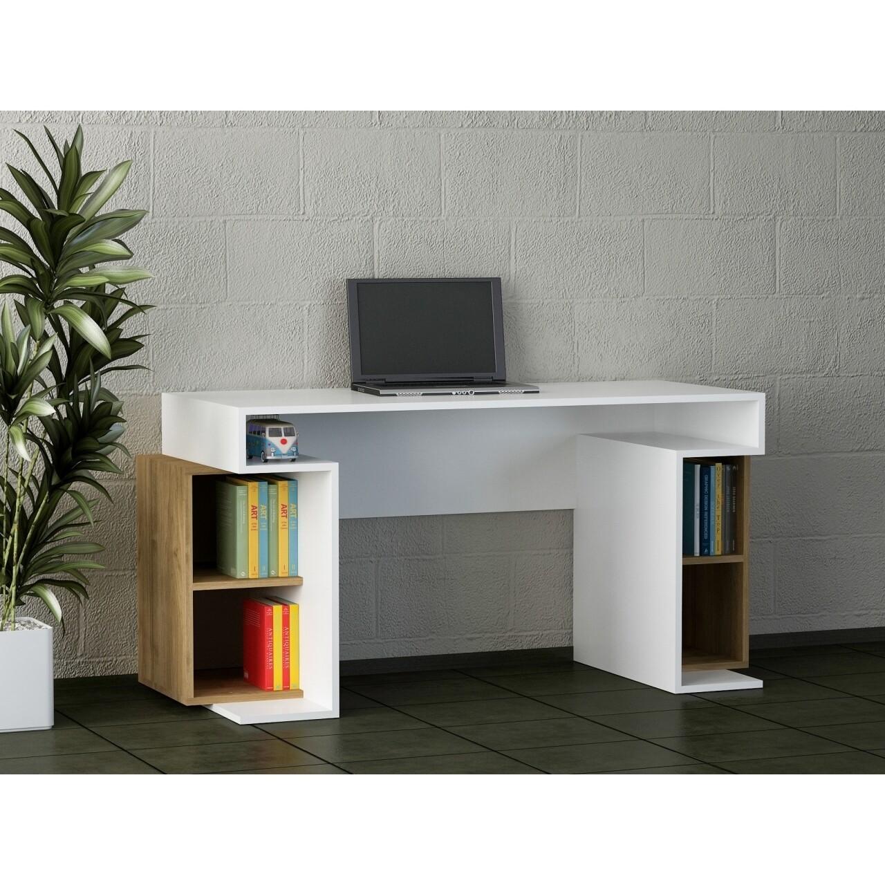 Ansamblu birou MODUS 5, PAL Oak, MDF Alb, Cappuccino Gloss