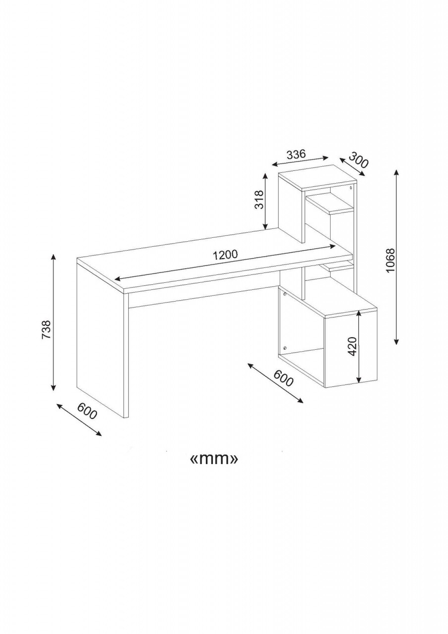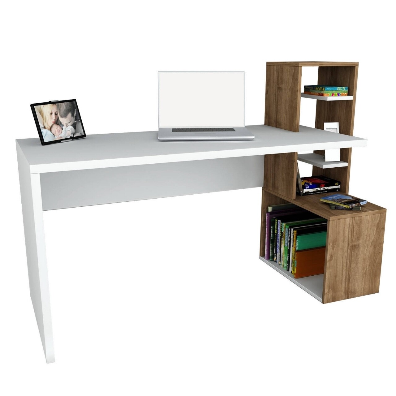 Birou Wooden Art, Side White Walnut, 120x107x60 cm