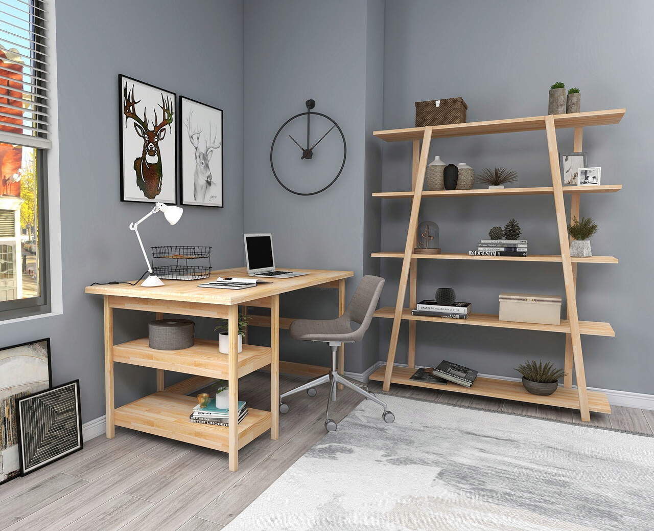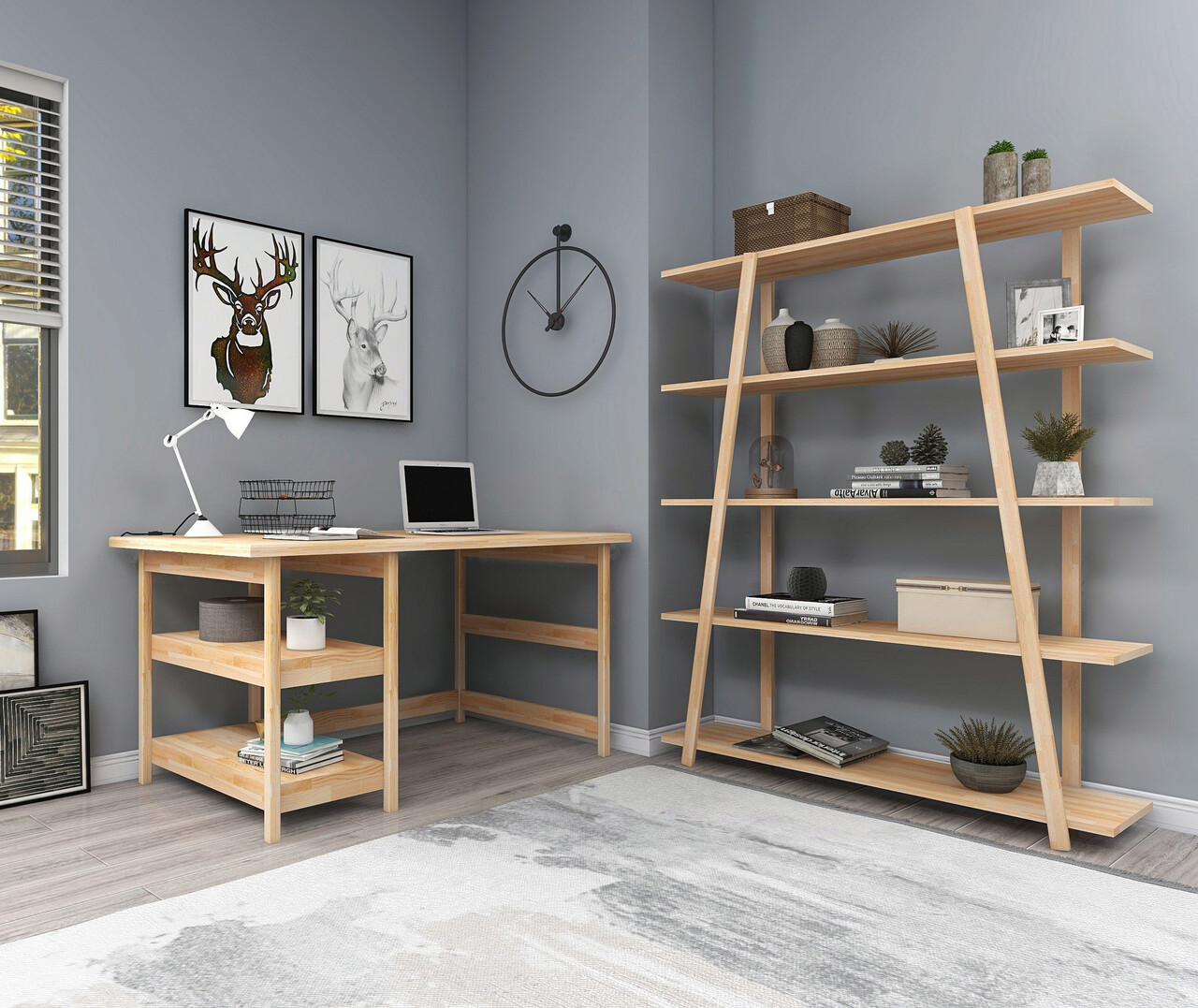 Set birou si biblioteca, Woodface, Softcity, 120x75x55 cm, Lemn, Natural