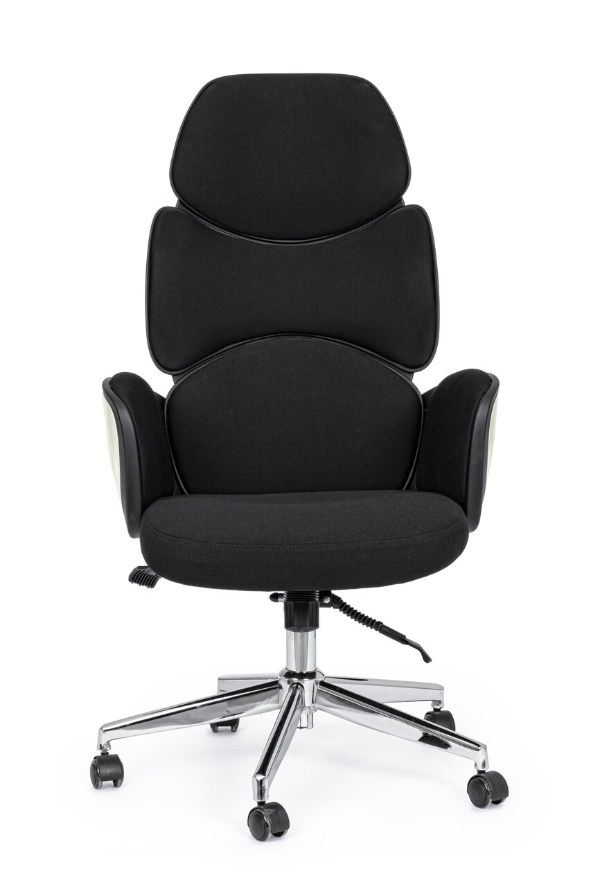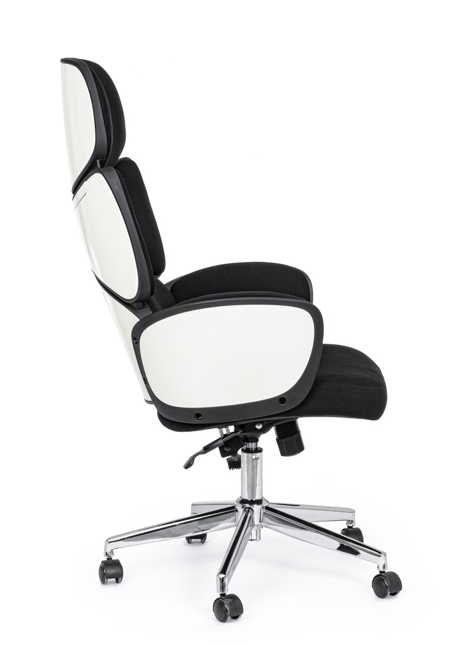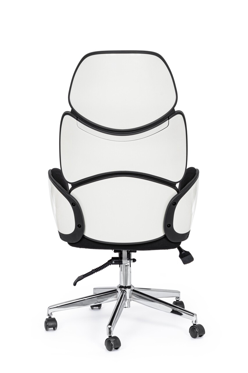 <p><strong>Caracteristici:</strong><br />Baza din otel cromat Ø 65 cm<br />Roti din poliuretan<br />Umplutura cu spuma poliuretanica, densitate 24 kg/m3<br />Husa din 100% poliuretan<br />Carcasa si brate din polipropilena<br />Mecanism multifunctional:<br />- Prevazut cu mecanism gaz lift pentru reglarea pe inaltime<br />- Functie de inclinare sincronizata (pentru a opri spatele in pozitia dorita<br />Greutate maxima suportata: 150 kg<br />Produsul necesita asamblare<br />Inaltime sezut: ajustabila intre 47.5 – 57.5 cm<br />Inaltime brate: ajustabila intre 67 – 77 cm<br />Inaltime totala: ajustabila intre 118.5 – 128 cm</p>