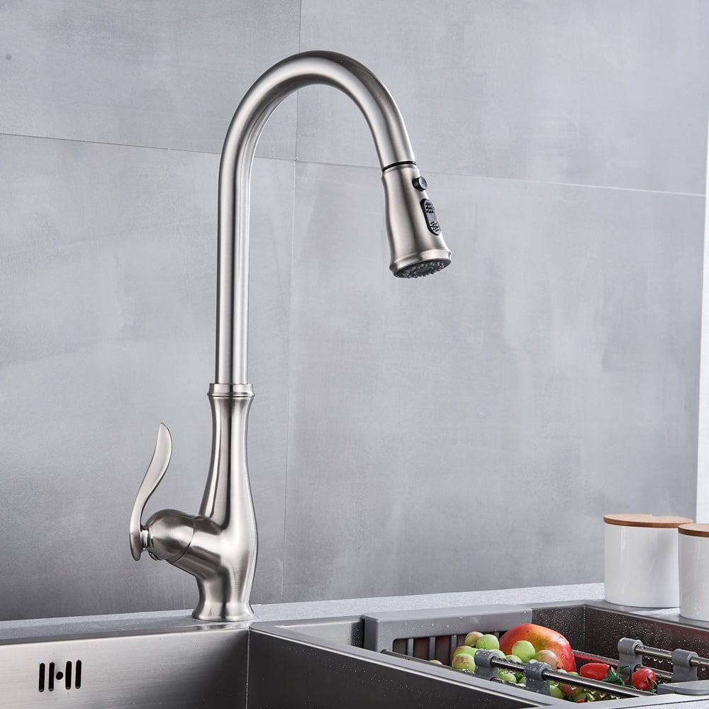 Bateria profesionala pentru bucatarie Shein, cu 2 functii de curgere, dus extractibil, argintiu nichelat, cod 1387