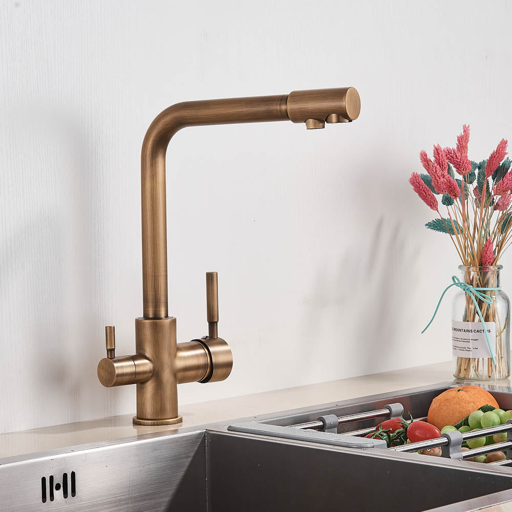 Baterie bucatarie cu 3 cai pentru filtru de purificare, auriu antichizat, cod 1211